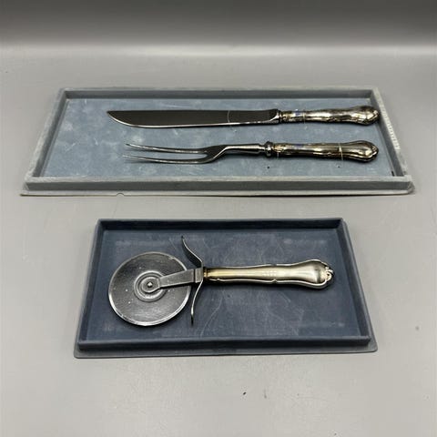 Hakusanat: antiikkinen, vintage, retro, rokokoo, aterimet, chippendale, hopea, Valmistaja, pöytähopeat, vintage huonekalut, pizzaleikkuri, auran kultaseppä