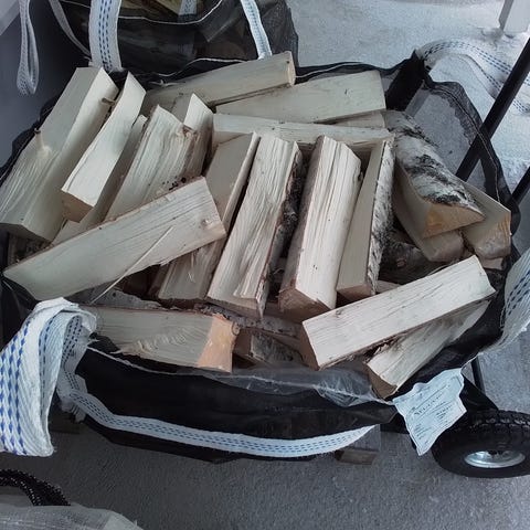 Polttopuu koivuklapia 60l säkeissä. Viime keväänä kaadettuja n. 30-35cm klapeja.