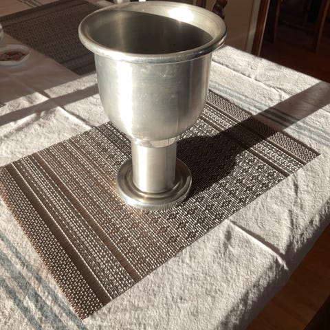 Tina-astiat, joka sisältää kaksi mukia(Scandia Tenn), pieni aluslautanen(Suomi-Tenn) ja tarjoiluvati(Linna Tinaa).Vadissa kaiverrukset ”Boris, päiväys” ja Tahinik Oy
