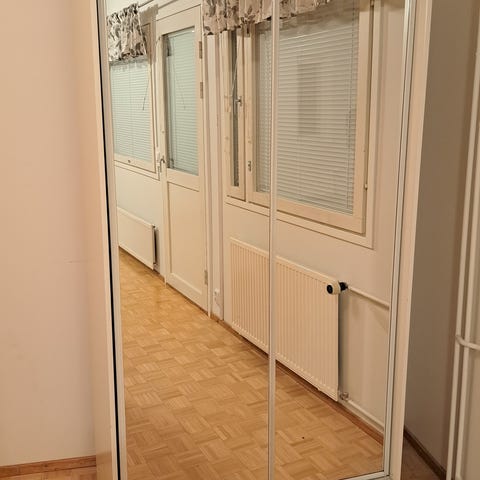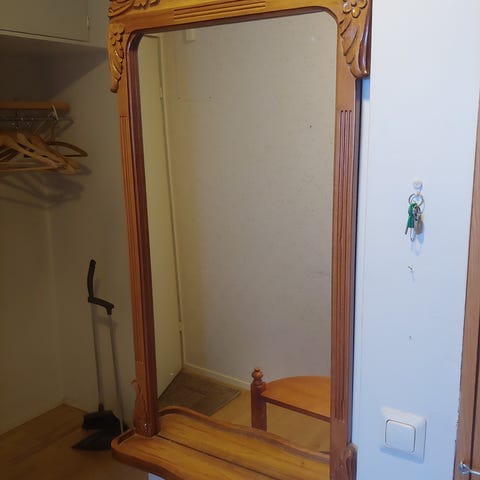 Täältä vähän yli vuosi sitten ostettu peilikaappi. Olikin liian iso meidän vessaan joten jäänyt käyttämättömäksi. Kunto hyvä, muutama sormen jälki saattaa peilissä olla ja muuten pölyinen. Tarkempia mittoja löytyy toisesta kuvasta.