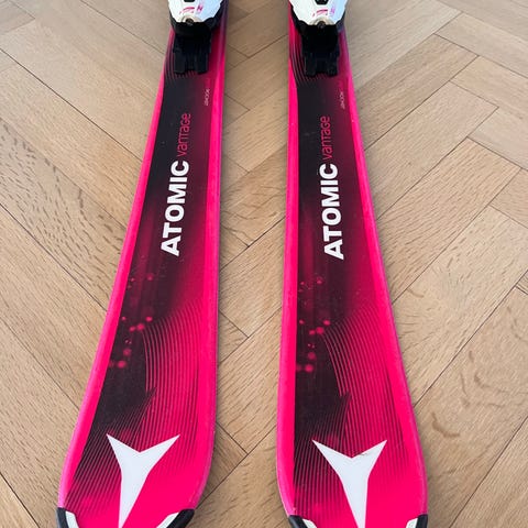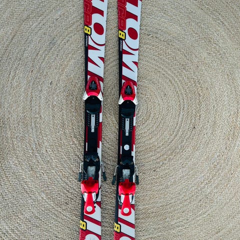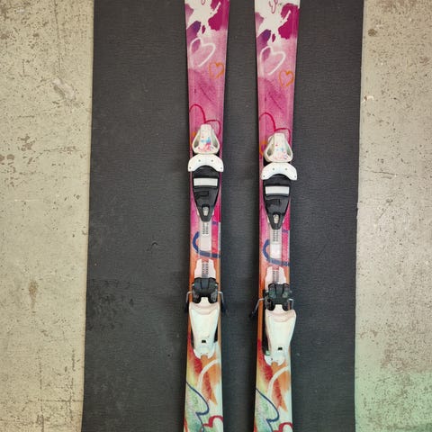 Hienot Atomic lasten laskettelusukset integroiduilla siteillä. Suksissa on monivärinen, pääosin pinkki-violetti kuosi ja valkoiset siteet. Soveltuvat lasten rinnelaskuun. Pituus 120cm.