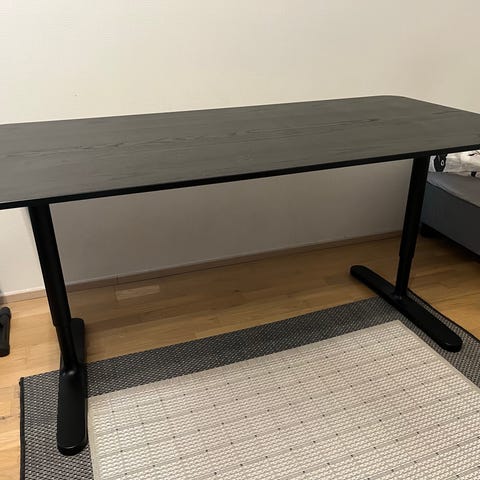 Myydään Ikean Bekant merkkinen valkoinen työpöytä. Pöytälevy valkoinen, mustat jalat. Siisti ja ehjä, pientä käytönjälkeä. Säädettävä korkeus, ei ole sähkö. Leveys 160 ja syvyys 60. Sivuosa 110, päädyssä kapeimmillaan 50.