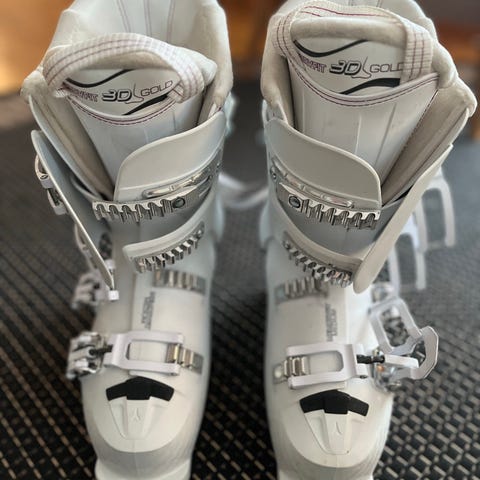 Hienot Atomic Monteo laskettelumonot, koko 24.5 (pohjan pituus 294 mm). Väriltään harmaat vaaleilla yksityiskohdilla. Monossa neljä säädettävää solkea ja tarrakiristys varressa. Sisäkenkä on pehmustettu ja nostolenkillä varustettu. Erittäin hyväkuntoiset ja hienot monot.