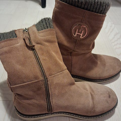 Tommy Hilfiger talvikengät, koko 38. Mustat nilkkapituiset nauhalliset talvikengät, joissa paksu ja kuvioitu kumipohja. Sivussa vetoketju helpottamassa pukemista sekä Tommy Hilfiger -logo varressa. Sopivat kylmään säähän ja arkikäyttöön. Karvavuorella. Ovh. 137e