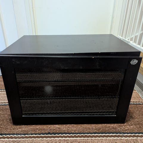 Annetaan kuvan Ikea Bestå ja kaksi lasiovea, vain haku. Kunto on perussiisti joskin vähän käytön jälkiä ja kaksi vanhaa pientä ruuvinreikää sivussa