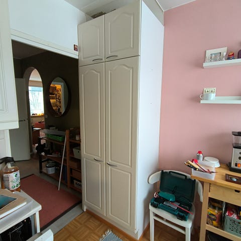Bestå kaappi on varattu mutta lasiovet ovat vielä jäljellä.