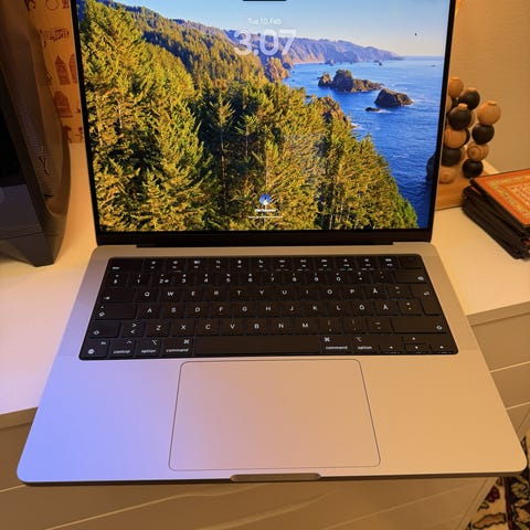 Apple M4 Pro 14 tuumainen Macbook pro Jossa 24gb muistia ja 512gb tallennustilaa. Koneessa on 12 prosessori ydintä ja näytönohjaimessa on 16. Akun max kapasiteetti on 100%, ja koneen fyysinen kunto on täydellinen.