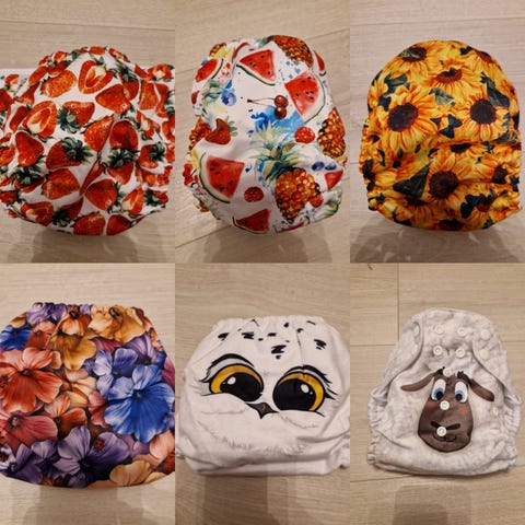 Pesty hajusteettomasti kestovaipoille sopivalla pesuaineella. Käytetyt vaipat pesty yleensä joka toinen päivä, joskus joka kolmasosa päivä.