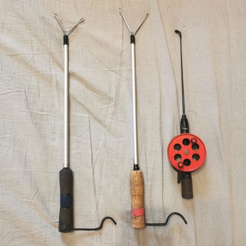 Jonkun omatekoinen oikea kätinen kehivapa, Varsi alumiini, kasattu perhonsidonta langalla ja epoksilla. Kahva foamia jossa päällä jääkiekkomaila teippi (erkka)
