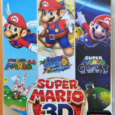 Super Mario 3d Allstars Nintendo Switch peli. Juhlavuonna kerran pelattu, jonka jälkeen ollut hyllyllä esillä.
