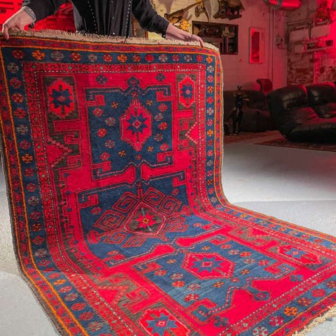 käsinsolmittu itämainen aitomatto villamatto vintage persialainen aito villa balutsi ruskea oranssi punainen geometrinen kesikokoinen matto käsinkudottu käsin käsintehty käsityö antiikkimatto vintagematto helsinki helsingissä
