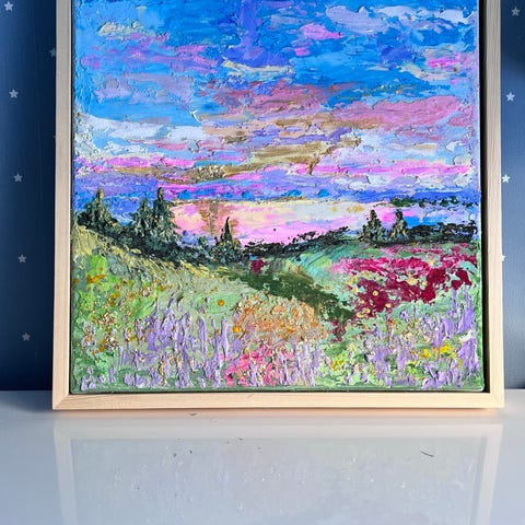 Talvimaisema taulu, jossa on luminen jokimaisema ja puita auringonnousun tai -laskun aikaan. Pehmeät pastellisävyt, kuten vaaleanpunainen, sininen ja vaalea keltainen, korostavat maiseman rauhallista tunnelmaa. Taulu on suorakaiteen muotoinen ja varustettu kehyksillä, jotka helpottavat seinälle ripustamista. Sopii sisustuselementiksi esimerkiksi olohuoneeseen, makuuhuoneeseen tai työtilaan.