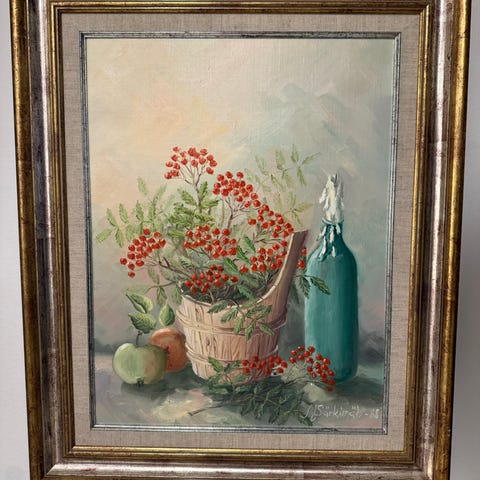 Hakusanat: taiteilija, kukka-asetelma, taulu, m. akutin, taulut, 1945, kehys, raamit, väri, sisustus, maisema, vesiväri, akvarelli, teos, kehykset, raami, öljyväri, asetelma, maalaus, Paketoitava, taide, öljyvärimaalaus