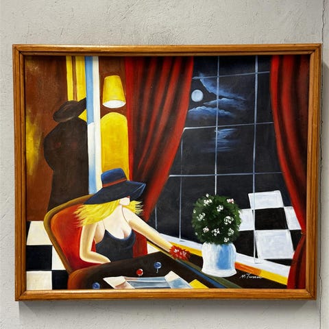 Kehyksessä on havaittavissa kulumista, mutta maalaus on hyvässä kunnossa.
