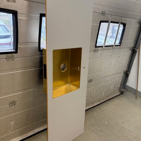 Pituus 2,53m, syvyys 60 cm. Tason paksuus 30mm. Aukotukset 60cm ja 40cm. Toinen pääty ja pitkä sivu nauhoitettu.