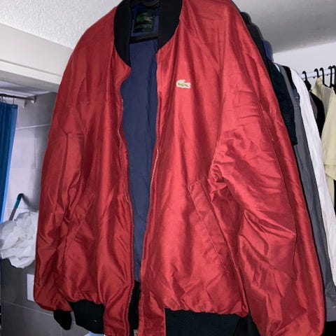 Hyväkuntoinen Lacoste t-paita koossa XXL, Made in France. Hauska ”kahden paidan yhdistelmä". Kainalosta kainaloon 60 cm, olkapäästä helmaan 74 cm. Voin lähettää tarvittaessa