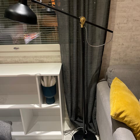Hyväkuntoinen valkea Ranarp-lattiavalaisin.