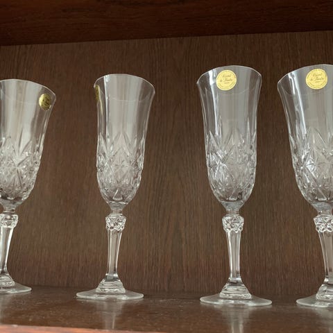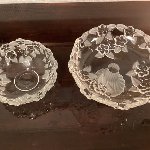 Ehjät ja hyväkuntoiset pienet kristalli lasikupit. Käyvät tuikkukipoiksi, jälkiruoalle tai tarjoiluun. Ylälaidan halkaisija 10 cm, pohjan halkaisija 5,5 cm (ulkomitta) ja korkeus 6,5 cm.