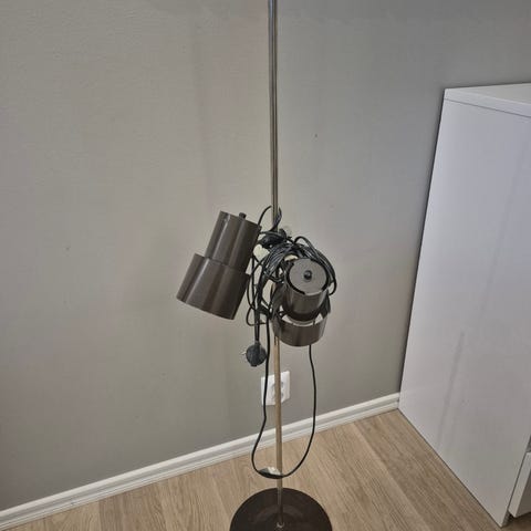 Vintage lotuskukka- lattiavalaisin, arviolta 1950-luvulta. Merkkiä en tiedä. Korkeus noin 2 metriä. Vaatii jonkun osaavan korjausta, lähinnä tangon ylempää osaa (kukka-osa, saa irrotettua kahteen osaan), ei pysy suorassa. Kuvista näkyy lievä kaartaminen sivulle. Lamppu toimii muuten. Painaa kuin synti lampun marmoripohjan vuoksi.
