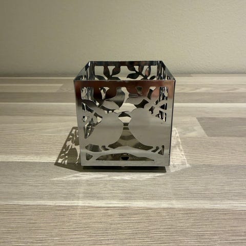 Partylite metallinen tuikkukynttilälyhty, jossa on läpikuultava lumihiutalekuviointi. Lyhty on hopeanväristä metallia ja suunniteltu tuikkukynttilälle. Pohjassa on pienet jalat, jotka nostavat lyhdyn irti alustasta. Sopii sisäkäyttöön tunnelmavaloksi tai osaksi kausikoristelua esimerkiksi talvi- ja joulusomistuksiin.