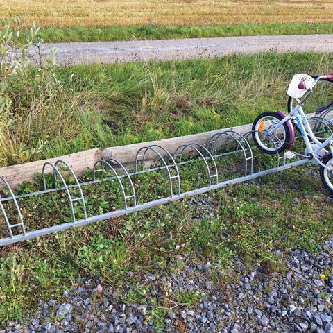 Kohtuukuntoinen pyöränkuljetusteline, hieman on maali halkeillut joistain kohdista, kuten kuvasta näkyy.