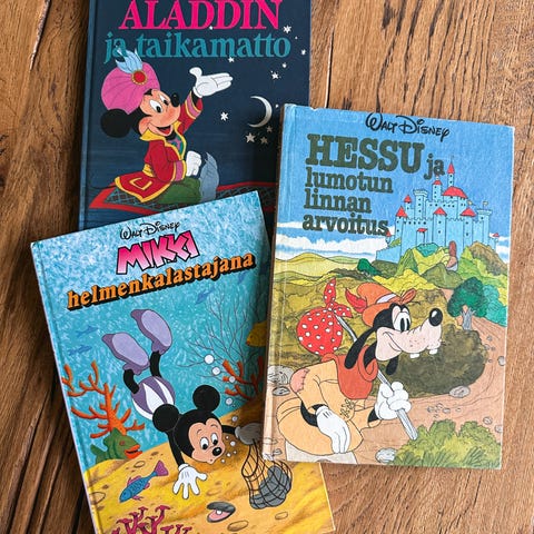 2kpl Walt Disneyn kirjoja Aladdin ja taikamatto ja Kaislikossa suhisee. Yht hinta 4 euroa.