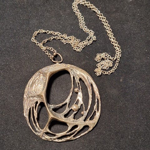 Hopeinen kaulakoru. Ketjussa leima 925 KOY - Käljy Oy valmistus vuodet 1946-1948.