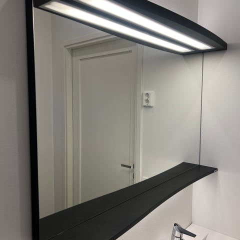 Suorakaiteen muotoinen Tammiholma valopeili integroidulla LED‑valaistuksella. Koko 60x60cm. Peilissä on kaksi pystysuuntaista valolistaa peilipinnan etupuolella.