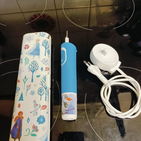 Oral-B sähköhammasharja. Mukana tulee latausteline verkkovirralla sekä yksi vaihdettava harjaspää pakkauksessa. Runko on mustavalkoinen ja siinä on virtapainike sekä merkkivalot. Soveltuu hampaiden päivittäiseen harjaukseen ja suuhygienian ylläpitoon yhteensopivien Oral-B-harjaspäiden kanssa.