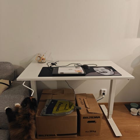 Moitteettomassa kunnossa oleva Ikean Relatera työpöytä.