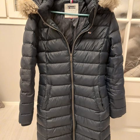 Tommy Hilfiger naisten untuvatakki koossa M (kokolapussa lukee L mutta pientä kokoa), väriltään valkoinen. Takin päällinen on tikattua materiaalia ja täytteenä on untuvaa. Edessä on vetoketjukiinnitys ja vetoketjulliset sivutaskut. Hupussa on irrotettava tekoturkisreunus. Vuori on kuviollinen. Sopii talvikäyttöön ja arkipukeutumiseen. Erittäin hyvä kunto, ainoa virhe on taskun vieressä oleva minitahra joka lähtenee pesussa. Takkia ei ole pesty kertaakaan joten untuvat on säilyneet erinomaisessa kunnossa.