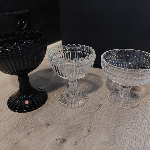 Myydään Iittala juomalaseja ja Mariskooli. Pakettiin kuuluu neljä Verna-lasia, neljä Aalto-lasia (kaksi eri kokoa) sekä Mariskooli (isompi koko). Kaikki hyväkuntoisia, vähällä käytöllä olleet. Myydään kuvassa näkyvä kokonaisuus pakettina. Huom! Myös vaihto toisen värisiin Iittalan juomalaseihin ym. mahdollinen. Tarjoa!