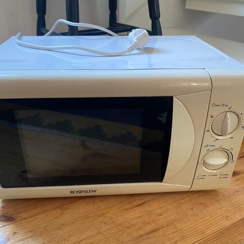 Valkoinen pieni / keskikokoinen mikro. (Peruskokoiset astiat mahtuu hyvin). Mitat korkeus 24 cm, leveys 43 cm ja syvyys 30 cm. Toimii moitteettomasti.