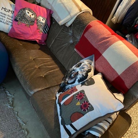 Annetaan hyväkuntoinen plyysisohva. Sohvan sisällä on säilytystilaa. Nouto.
