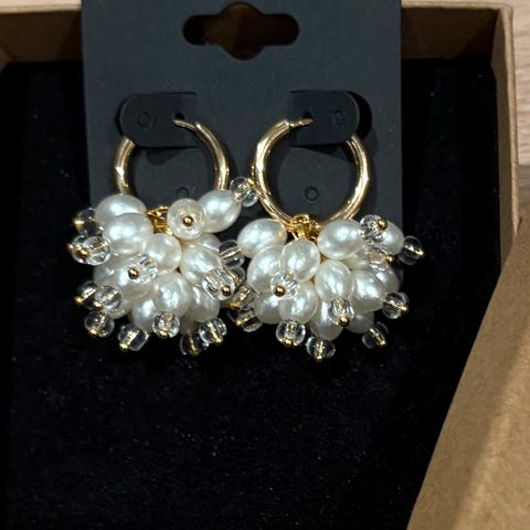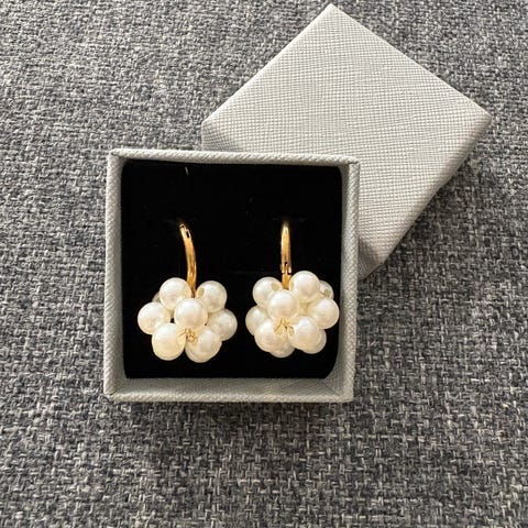 Valkoiset pienet helmipallo-korvikset kultaisilla yksityiskohdilla