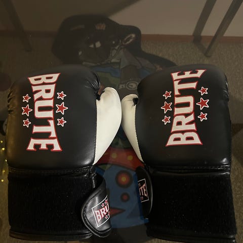 Brute nyrkkeilyhanskat 10 oz, väri musta. Hanskoissa tarrakiinnitys ranteessa ja pehmustettu iskualue. Mukana Brute-säilytyspussi.