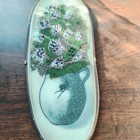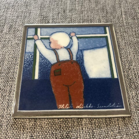 Heljä liukko lampetti. Korkeus 37.5. Leveys 33 cm. Hyvässä kunnossa