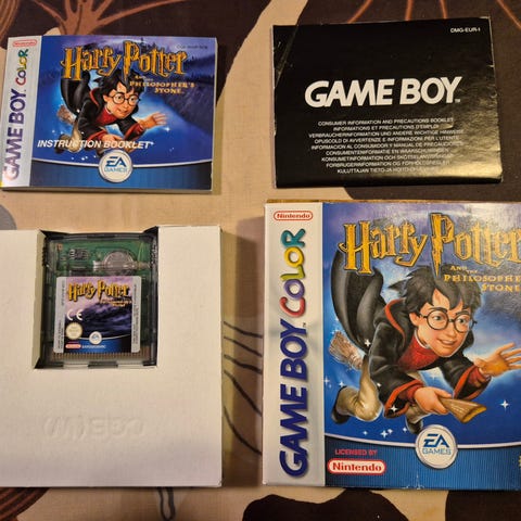 Harry Potter and the Philosopher’s Stone Game Boy Color -peli. Kasettimuotoinen videopeli Nintendo Game Boy Color -käsikonsolille. Pelin kieli ja ikäraja eivät käy ilmi kuvasta. Soveltuu yhteensopiviin Game Boy Color -laitteisiin.