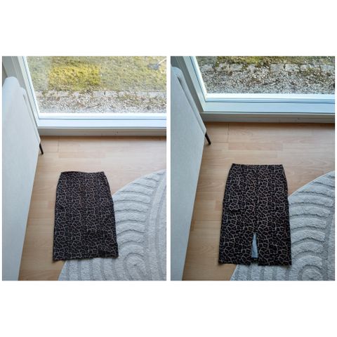 Naisten hame leopardikuosilla, koko 38. Hame on pituudeltaan keskipitkä–pitkä ja sopii arki- tai vapaa-ajan käyttöön. Kuosissa on ruskean, mustan ja valkoisen sävyjä. MSoveltuu käytettäväksi erilaisten yläosien kanssa esimerkiksi töihin tai rentoon pukeutumiseen.