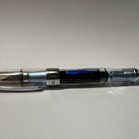 Omaan käyttöön tämä ei välttämättä ole hintansa arvoinen, joten katsotaan, jos joku toinen saisi tästä enemmän iloa irti. Ostaja saa valita, että haluaako kynän puhdistettuna ja tyhjänä, vai täytettynä jollain seuraavista musteista: Pelikan 4001 Blue Black, Pelikan 4001 Brilliant Brown, Pelikan 4001 Royal Blue tai Lamy T52 Blue Black.