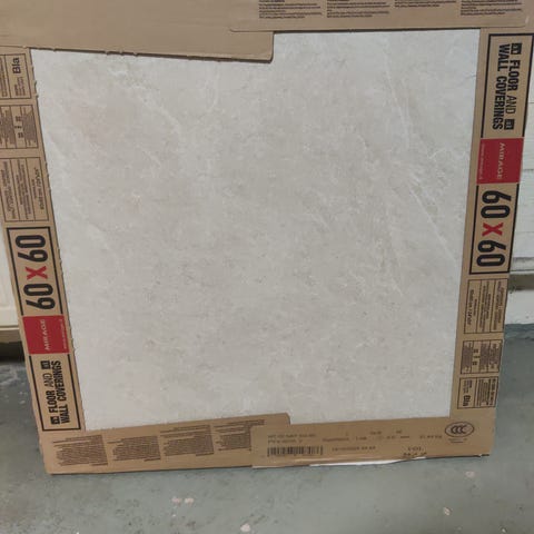 Keraaminen laatta, koko 60x60 cm. Väri valkoinen, jossa marmorikuvio. Laatta soveltuu seinäpinnoille esimerkiksi keittiöön, kylpyhuoneeseen tai muihin sisätiloihin.