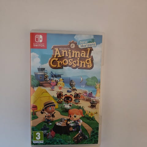 Animal Crossing: New Horizons Nintendo Switch -peli. Ikäraja PEGI 3. Pelissä pelaaja kehittää omaa saariyhteisöään, kerää resursseja, sisustaa ja tekee tehtäviä eri hahmojen kanssa.