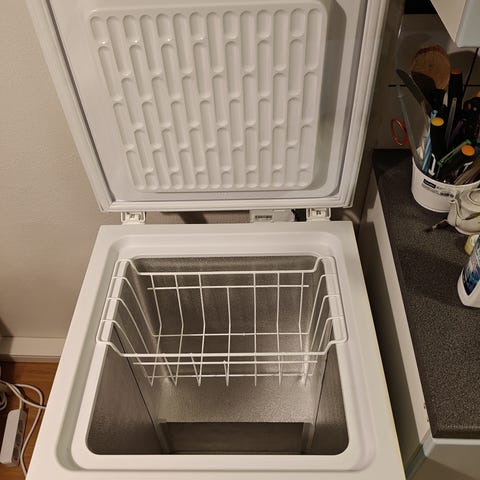 Siemens GT20K920 arkkupakastin. Valkoinen, ylhäältä avattava pakastin, jossa sisäkorina irrotettava metallikori. Etiketin mukaan laite käyttää kylmäaineena R600a:ta ja kuuluu lämpötilaluokkaan SN–T. Etupaneelissa on mekaaniset säätimet. Ulkomitat kuvien perusteella korkeus noin 81 cm, 90 cm pituus ja noin 60 cm syvyys. Soveltuu pakastettujen elintarvikkeiden säilytykseen kotitalouksissa. Poistettu käytöstä toimivana mutta ikä ei ole tiedossa.