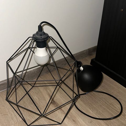 Ikeasta ostettu ps valaisin. Kuvassa pölyinen. Muuten hyväkuntoinen mutta yksi osa lähtenyt alhaalta irti.