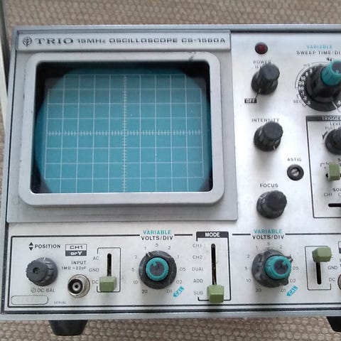 Myydään kuvien mukainen 15MHz kaksi kanavainen oskilloskooppi. Aaron BS-310S. Valmistettu Japanissa. Sisältää nahkalaukun, 2 kpl mittajohtimet, verkkojohto ja ohjekirjan. Hinta 80€ + mahd. lähetyskulut.
