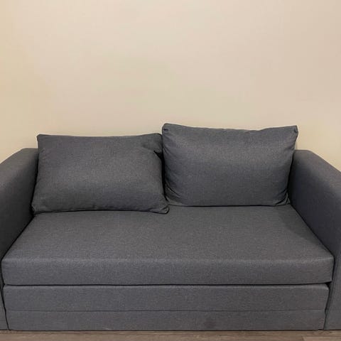 Jämäkkä ja siisti levitettävä vuodesohva kätevällä säilytyslaatikolla.