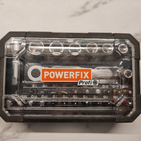 Käyttämätön hylsysarja. Sisältää hylsyjä, räikän, kuusiokulmaavaimia ja jatkovarsia.
