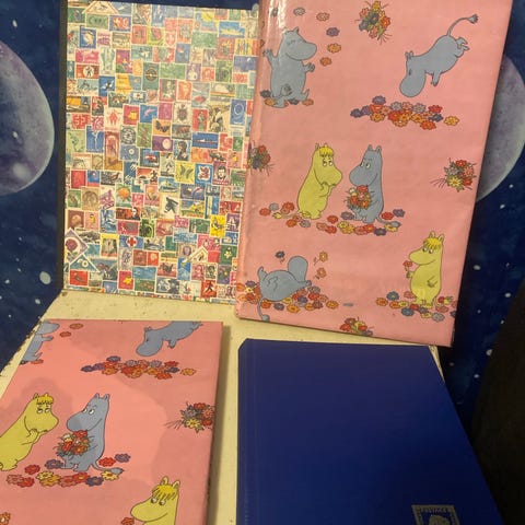 Kansiot siistejä ja merkit hyvässä kunnossa ikä huomioiden. Myydään mieluiten yhdessä, en myy yksittäisiä merkkejä.