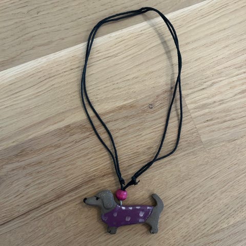 Käsin tehtyjä kaulakoruja koiraroduista. Jäännöserä, näitä rotuja jonkin verran. Yhdestä voi löytyä vielä myös rintakoru. Kaulakorun takana on peili.