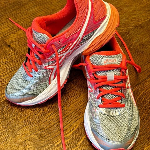 Asics juoksutennarit, koko 39. Väriltään sininen ja vaaleanpunainen, päällinen hengittävää verkkokangasta ja kumipohja. Nauhakiinnitys. Soveltuvat juoksuun ja muuhun liikuntaan sekä arkikäyttöön.